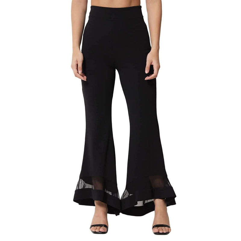 KOTTY المرأة العادية طول جيت أسود بنطلون سادة