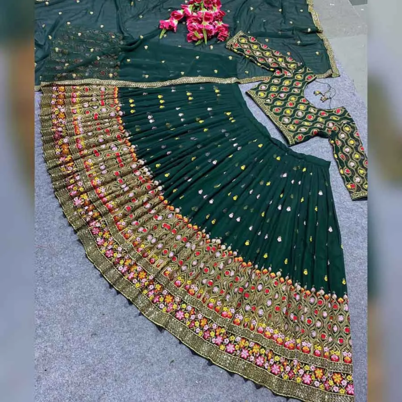 يضيف التصميم ثلاثي الأبعاد طبقة من العمق والتعقيد ، مما يخلق تأثيرا بصريا ملفتا للنظر يكمل بشكل جميل لوحة الألوان النابضة بالحياة. دوباتا ، وشاح تقليدي ، هو إضافة أنيقة لهذه المجموعة ويعزز الراحة والأناقة. يعد Designer Net 3D Work Lehenga Choli مع Dupatta in Green مثاليا لمختلف المناسبات مثل الحفلات وحفلات الزفاف والاحتفالات. يضمن نسيجها خفيف الوزن والمسامي أنه يمكنك الاستمتاع الكامل بالاحتفالات دون الشعور بالإثقال. توفر المادة الشبكية الناعمة تآكلا مريحا ، حتى أثناء الاستخدام المطول. تم تصميم lehenga لإضفاء لمسة جذابة على جميع أنواع الجسم ، مما يوفر صورة ظلية أنيقة وجذابة وأنيقة وعملية.