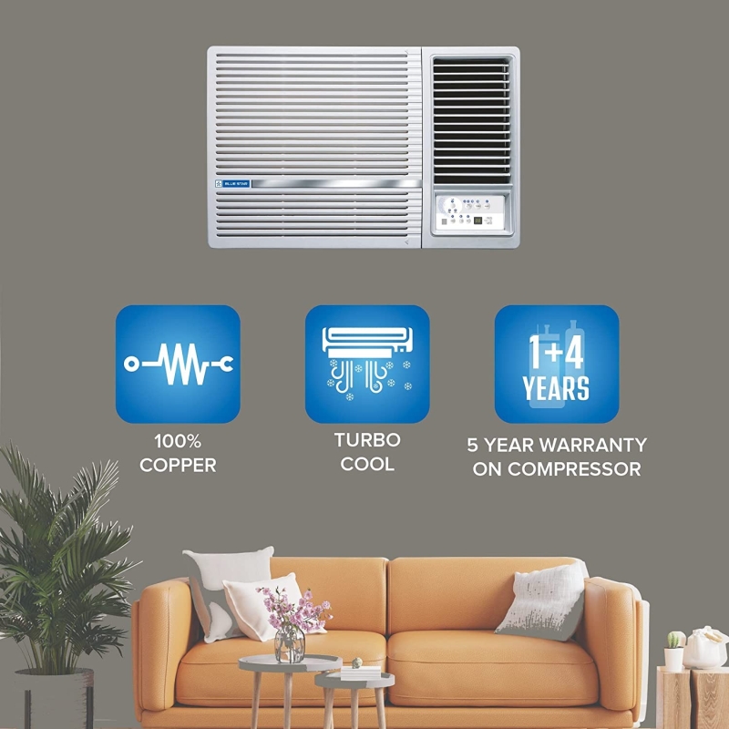 • Blue Star Window ACs offer unsurpassed cooling thanks to its highly efficient rotary compressor and are fully loaded with sleep mode and antifreeze thermostat features.